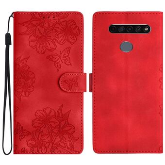 For LG K61 Cherry Blossom Butterfly Skin Feel Embossed PU Phone Case(Red)