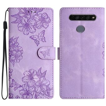 For LG K61 Cherry Blossom Butterfly Skin Feel Embossed PU Phone Case(Purple)
