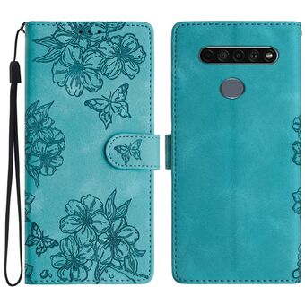 For LG K61 Cherry Blossom Butterfly Skin Feel Embossed PU Phone Case(Blue)