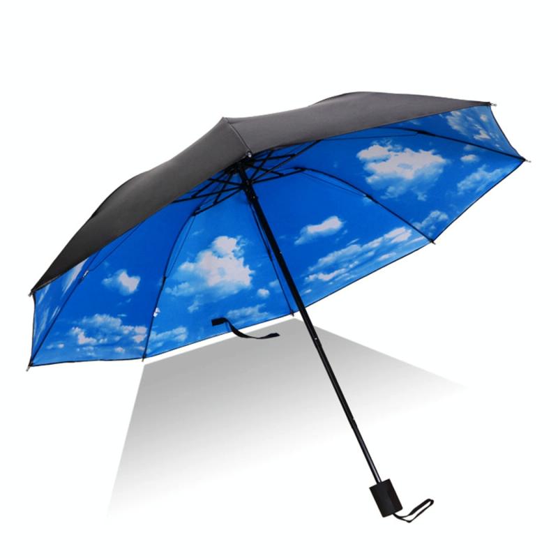 Lightweight Portable Three Folding Folding Umbrella, Black Waterproof Anti-UV, B Pattern