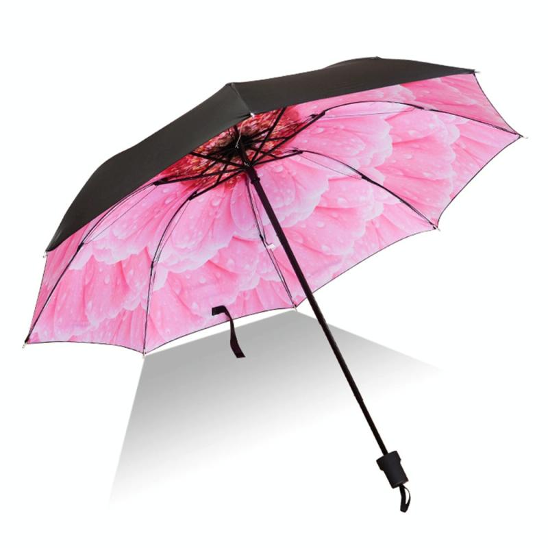 Lightweight Portable Three Folding Folding Umbrella, Black Waterproof Anti-UV, C Pattern