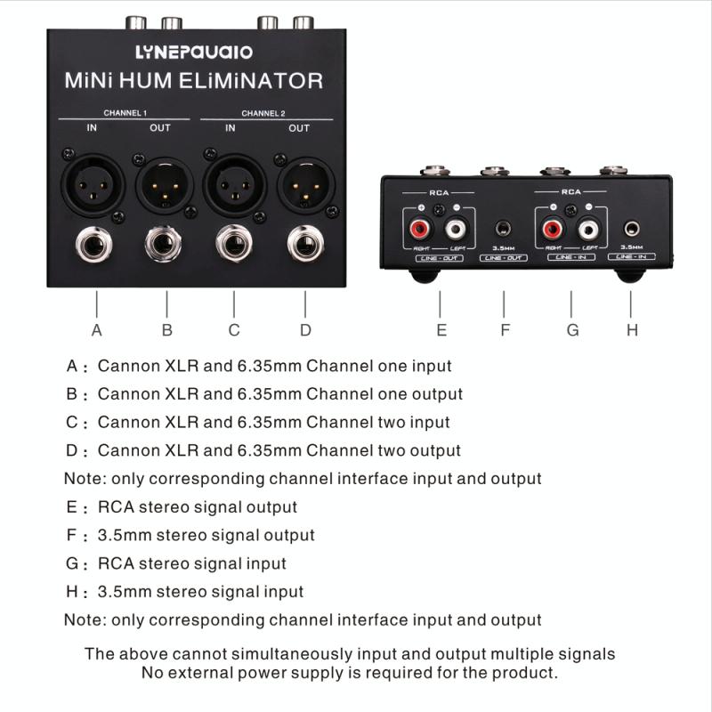Almost all 60Hz AC buzzing is caused by earthing loops and acts like a radio antenna (ring antenna). The buzzing noise canceller completely eliminates this by disconnecting the grounding circuit, making the signal line unable to absorb the AC buzzing and noise first. Compared with balanced circuits, unbalanced circuits are more susceptible to current noise and RF interference, the longer the unbalanced cables are, the more likely problems are. Using this device to connect two devices is one of the most economical and effective methods to convert between unbalanced signal and real balanced signal. Automatically convert signal voltage to match ground potential difference.
