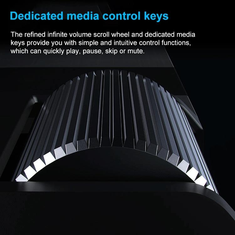 5. Refined borderless volume scroll wheel and dedicated media keys provide you with simple and intuitive control functions, which can quickly play, pause, skip or mute