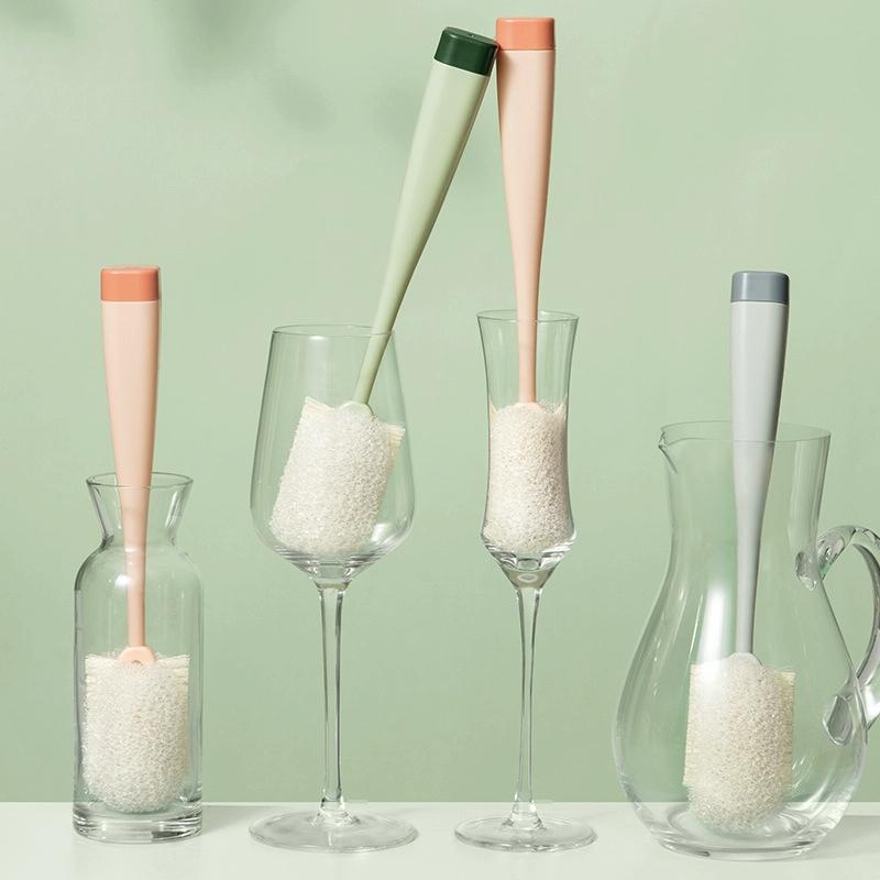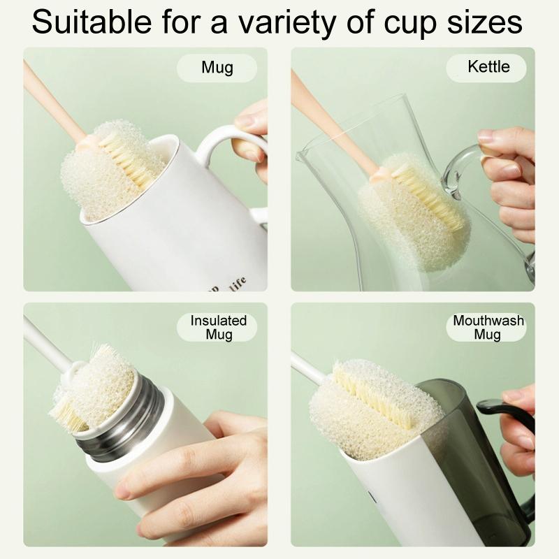 Long Handle Removable Sponge Mug Brush Household Cup Cleaning Brush(Gray)