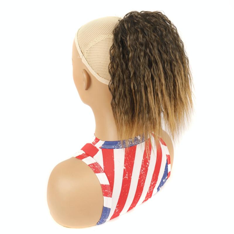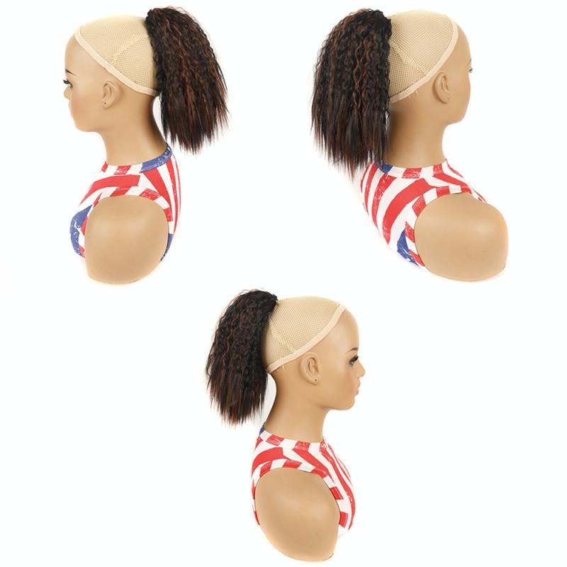 LS868 Drawstring Fixed Corn Perm Curly Wig Fluffy Short Ponytail Wigs, Color: 1BT27