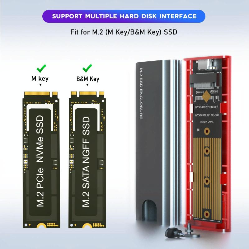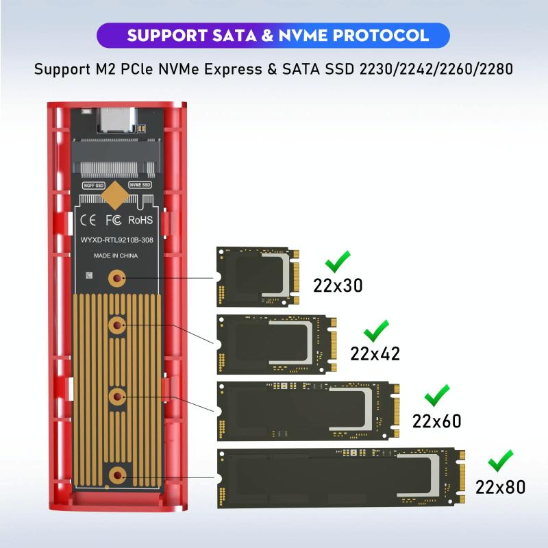2. Supports M.2 NVMe PCIe (up to 10Gbps) and M.2 SATA SSDs (up to 6Gbps).