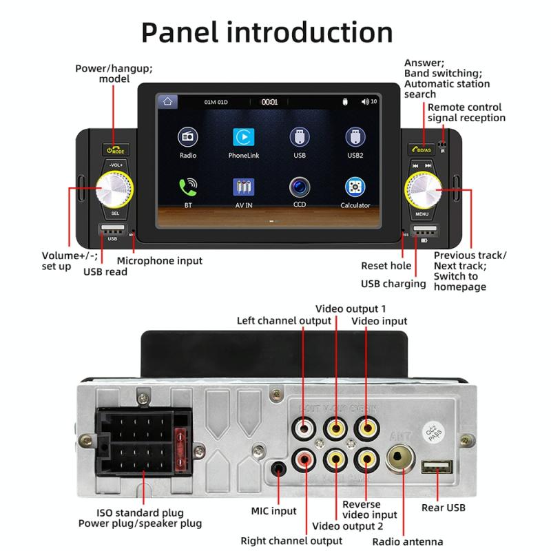4. Bluetooth function, version: 5.1 (default name: CAR BT)