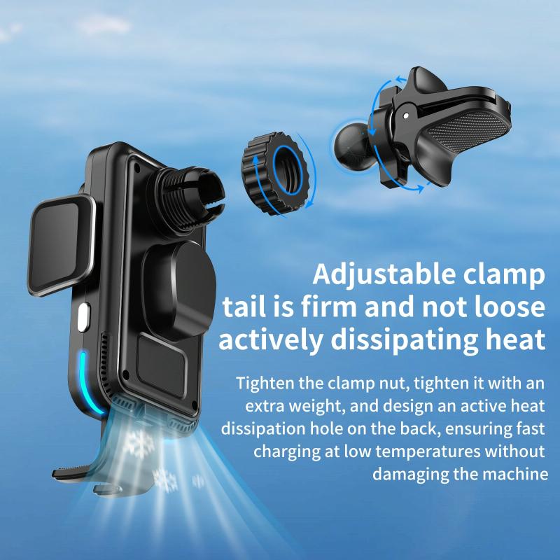 Packaging list: wireless charging bracket, air outlet clamp, base, Type-C cable, user manual, packaging box
