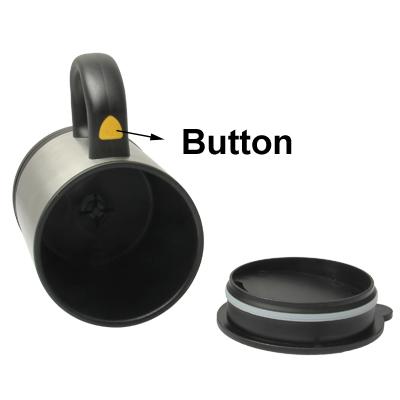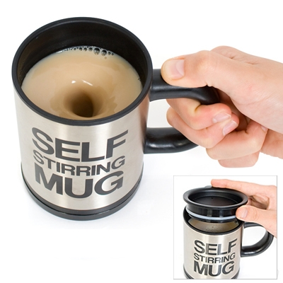 1. Press the button on the handle and cup will stir itself!