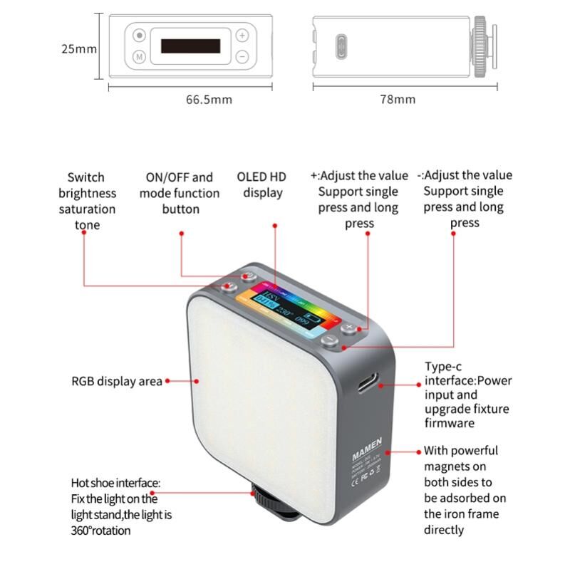 6. Magnetic design, strong adsorption, fill light at any time, and the two sides of the fuselage can be spliced at will