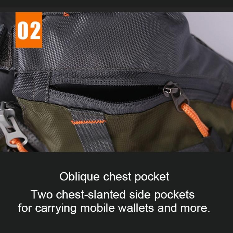 2.Four generous chest pocket, four zipped front pockets, two side mesh pocket, and one generous back pocket in total.