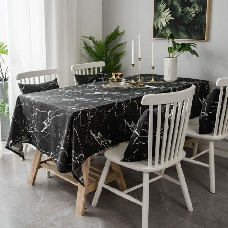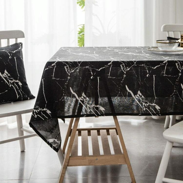 Marble Pattern Minimalist Tablecloth Cover Table Cloth Cotton Linen Dust-proof Cabinet Cloth, Size:140x250cm(Black)