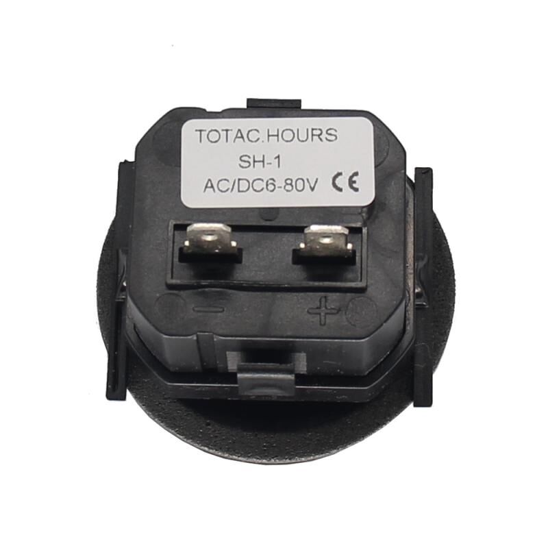 1. The timer has a 6 digit display with the least significant digit being 1/10 hour (99999.9) and operates on in put voltages from 8 to 80 Volts DC.