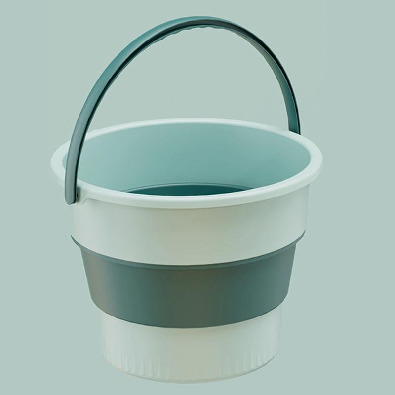 Medium 10L Folding Thickened Portable Plastic Bucket Outdoor Fishing Barrel Car Travel Wash Barrel(Light Green)