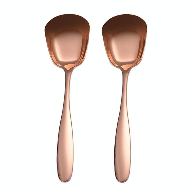 Medium 304 Stainless Steel Spoon Glossy Thickened Flat Head Flat Bottom Serving Spoon, Color: Rose Gold