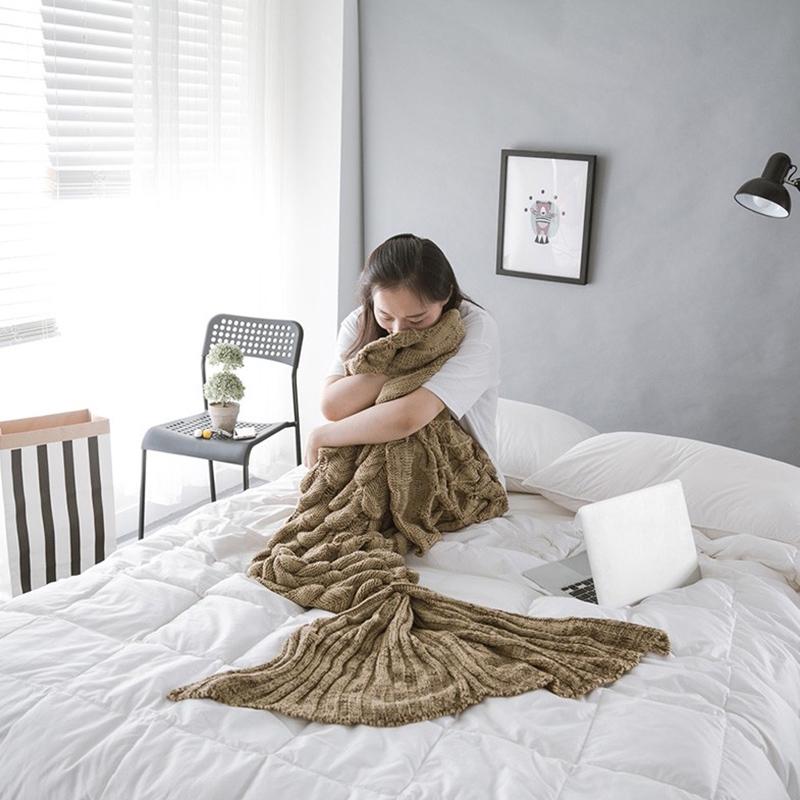 4. The mermaid knitted blanket has bright colors, and the unique weaving method creates a realistic fish scale shape, soft and comfortable, and beautiful in shape