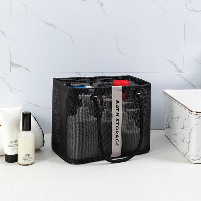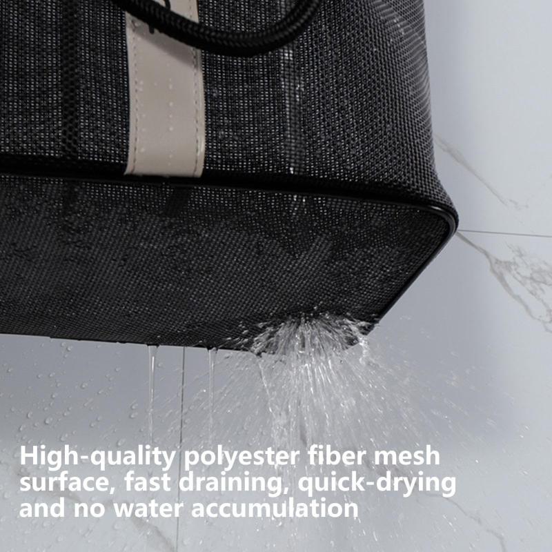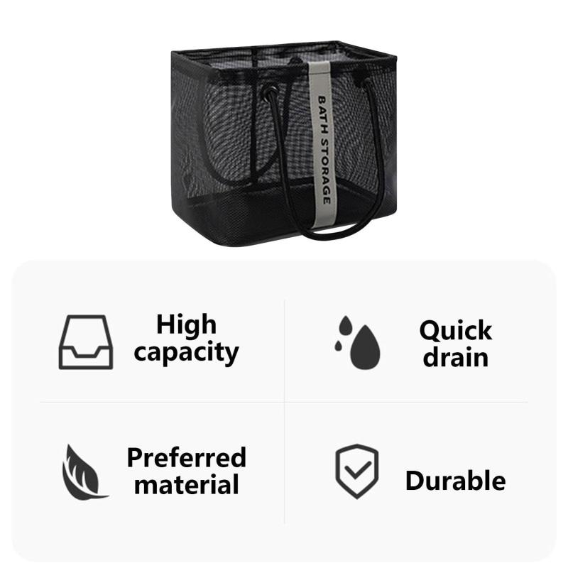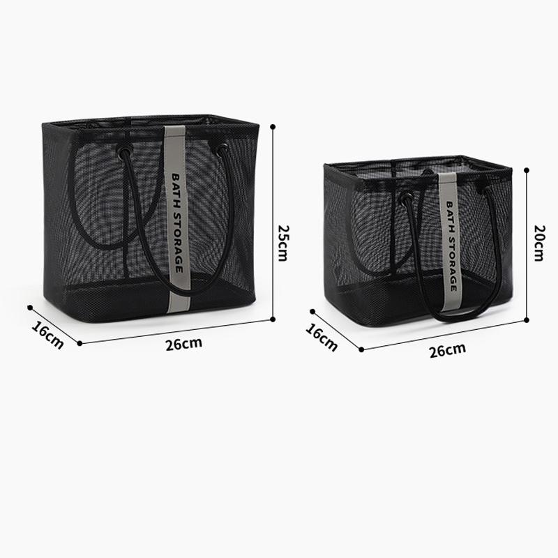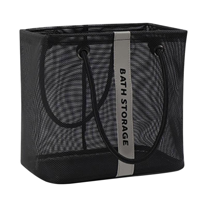 Mesh Toiletry Bag Basket Drainable Bath Bag Foldable Large Open Tote Bag Long Black