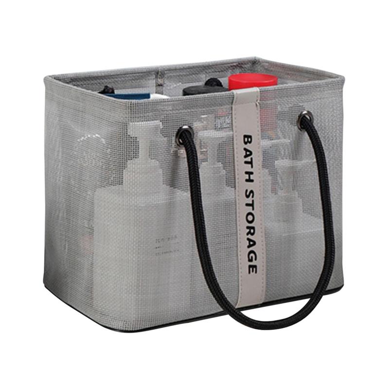 Mesh Toiletry Bag Basket Drainable Bath Bag Foldable Large Open Tote Bag Short Gray
