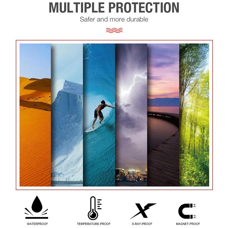 4. Four-fold protection: waterproof, anti-magnetic, cold-resistant and heat-resistant, anti-X-ray, escort the memory card, free from outside interference.