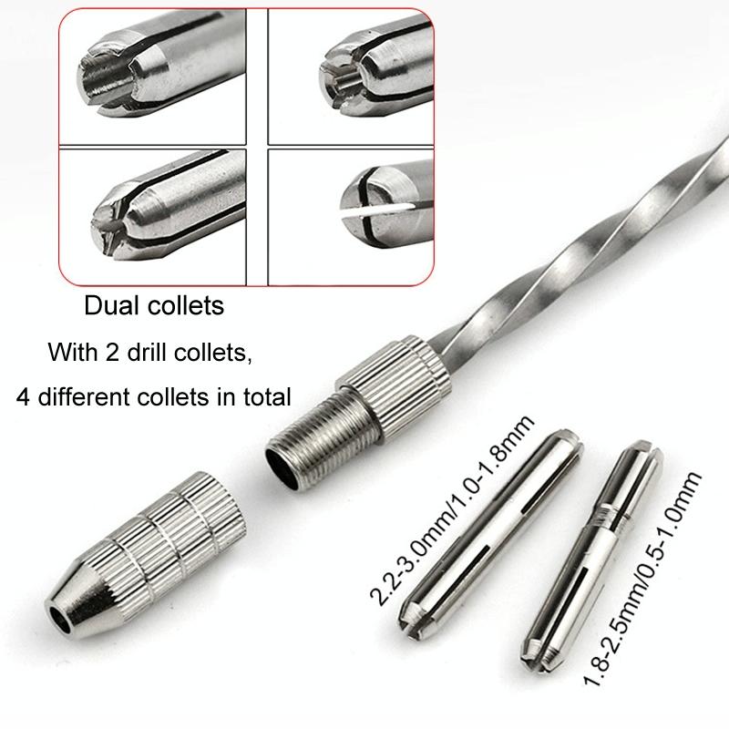 5. Double collets, with 2 drill clamps, a total of 4 different collets, high drilling efficiency, large clamping range