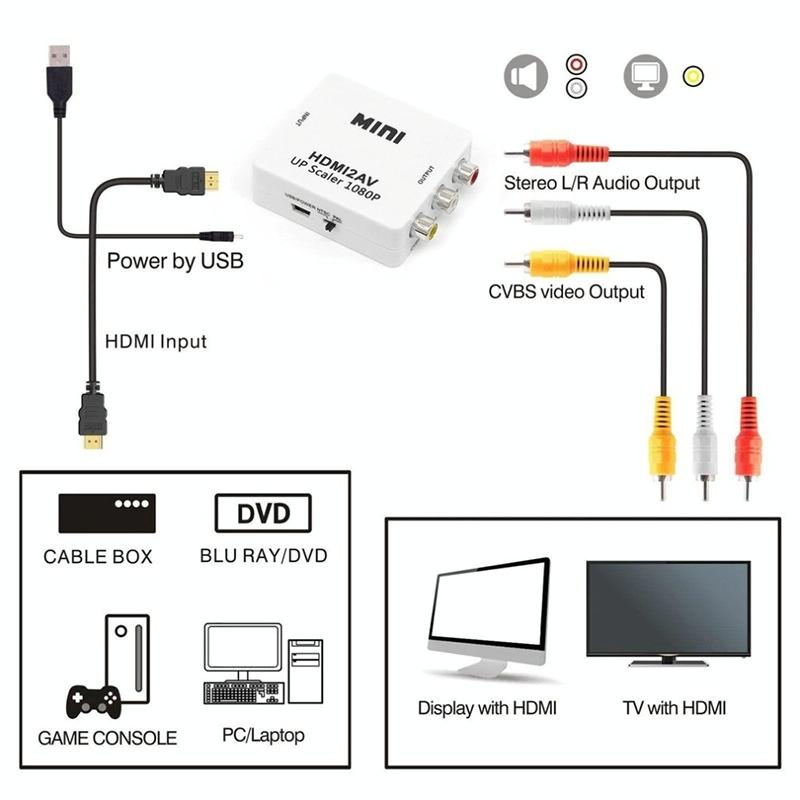 The MINI HDMI to AV signal converter which will convert HDM video signal or audio signal to AV (CVBS) composite video signal and the FL / FR stereo audio signals, while support DVI system sideline signals. To help users convert the high quality of the HDMI video signal into normal CVBS signal (standard-definition 480i, 576i,).So that can play on TV, VHS VCR, DVD recorders, etc and support NTSC and PAL two TV format.