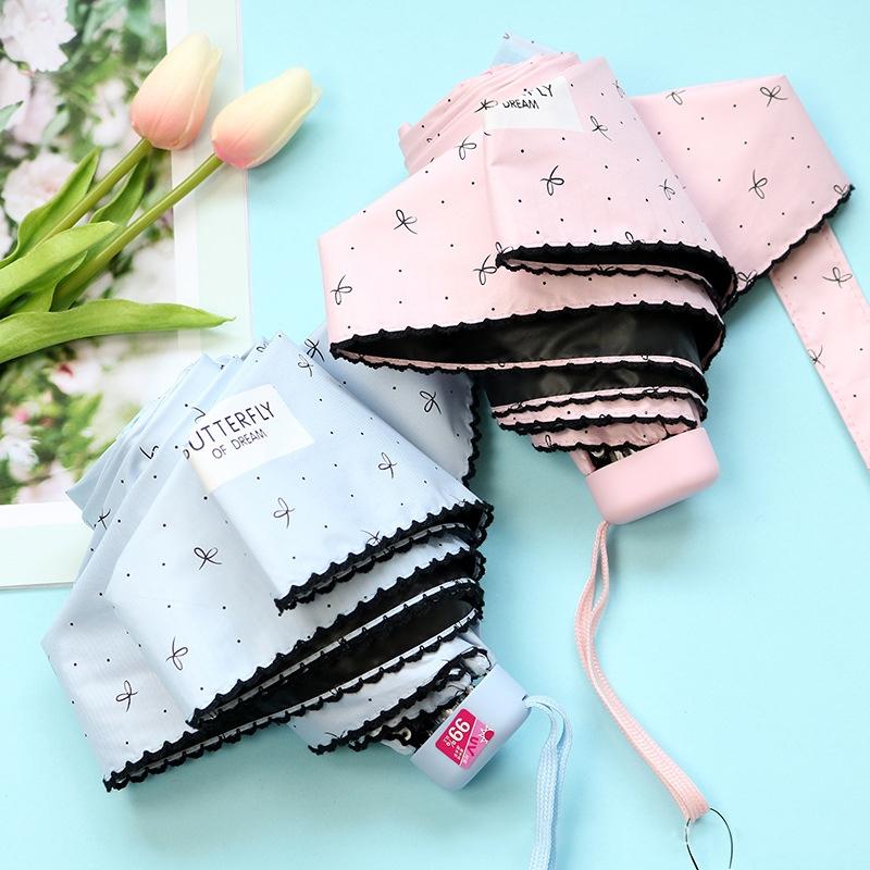 Mini Pocket 5 Folding Umbrella UV Protection Black Plastic Umbrella(Light Blue)