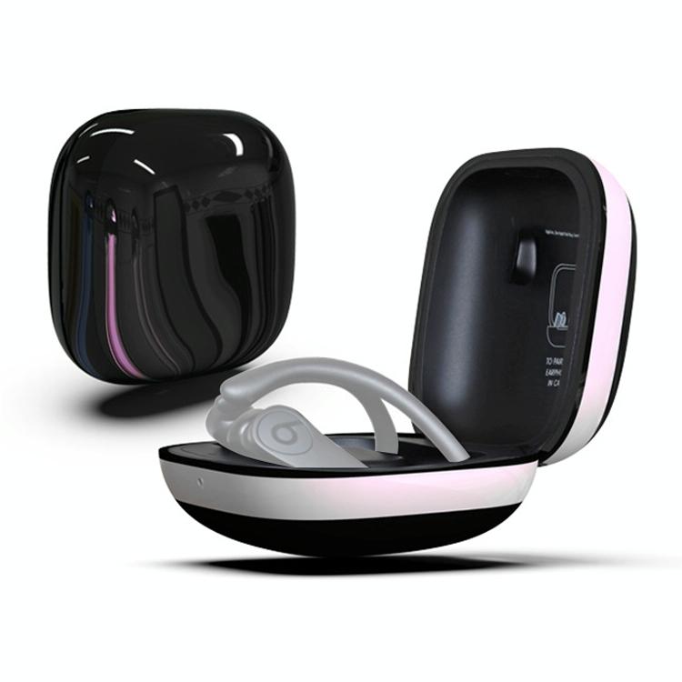 Mirror Surface Silicone + PC Wireless Earphone Protective Case for Beats Powerbeats Pro(Black+White)