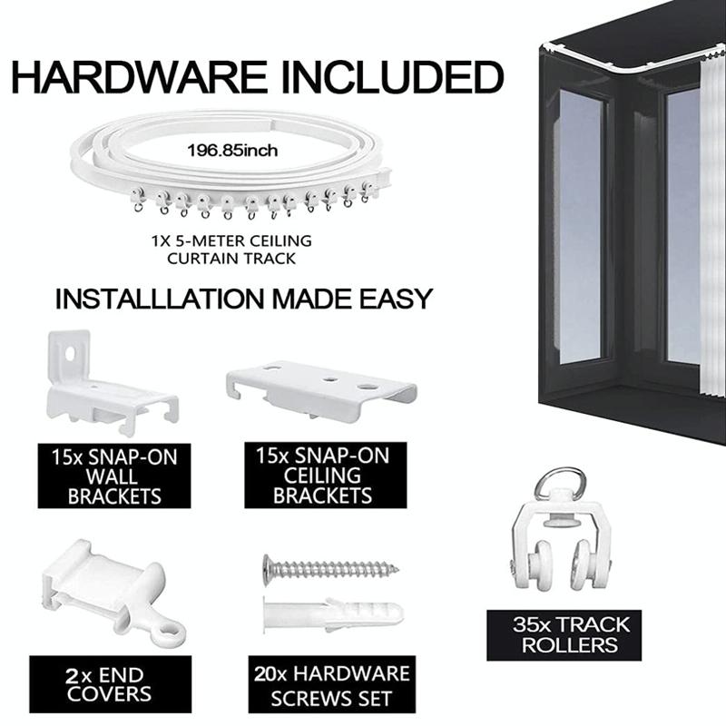 6. 5 m suit: 5 m bend rail, pulley X 32, top loading x 15, side loading x 15, screw x 15, expansion plug x 15, plug x 4
