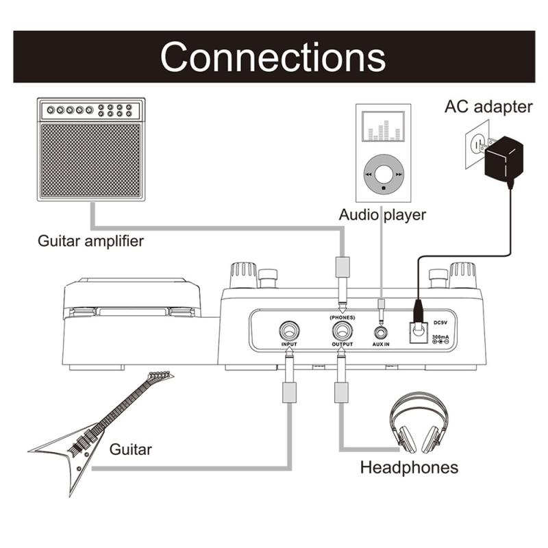 6. Power supply: 9V DC power supply, 300mA (inside negative and outside positive)/4 AA batteries (not included)