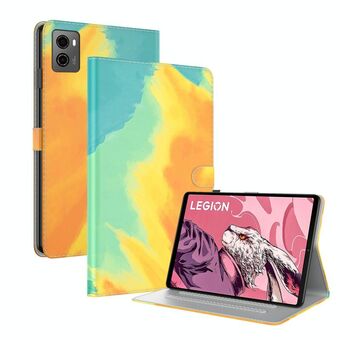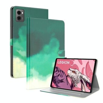 For Lenovo Legion Y700 2023 Watercolor Pattern Flip Leather Tablet Case(Cyan Green)