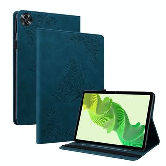 For Realme Pad 2 Butterfly Flower Embossed Leather Tablet Case(Blue)