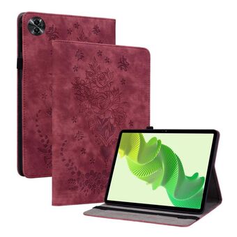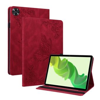 For Realme Pad 2 Butterfly Flower Embossed Leather Tablet Case(Red)