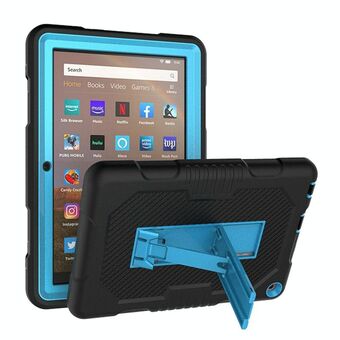 For Amazon Kindle Fire HD 8 (2020) B2 Contrast Color Silicone + PC Protective Case with Holder(Black+Blue)