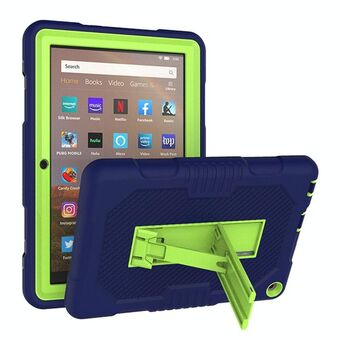 For Amazon Kindle Fire HD 8 (2020) B2Contrast Color Silicone + PC Protective Case with Holder(Navy Blue+Olivine)