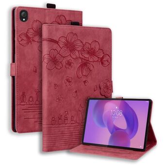 For Lenovo Tab P12 12.7 Cartoon Sakura Cat Embossed Leather Tablet Case(Red)
