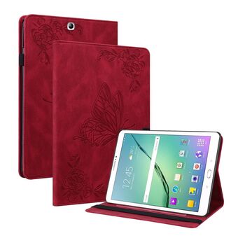 For Samsung Galaxy Tab A 10.1 2016 T580 Peony Butterfly Embossed Leather Smart Tablet Case(Red)