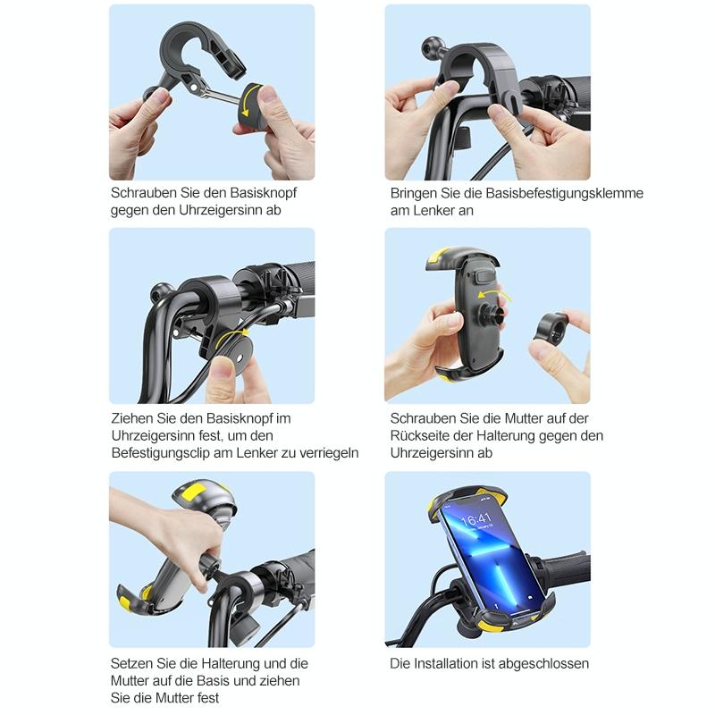 5. Easy Installation: One hand operation motorcycle phonemount is easy to install without tool. Suit well with various types of bicycles, motorcycles,stroller, shopping cart, electric scooter, indoor treadmill, indoor bike.
