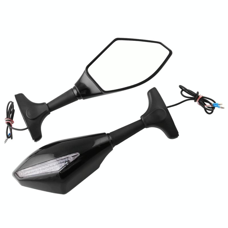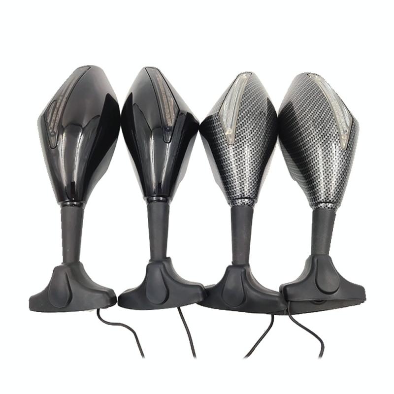 Motorcycle Modified Rear View Mirror Set with Light for Kawasaki (Black)