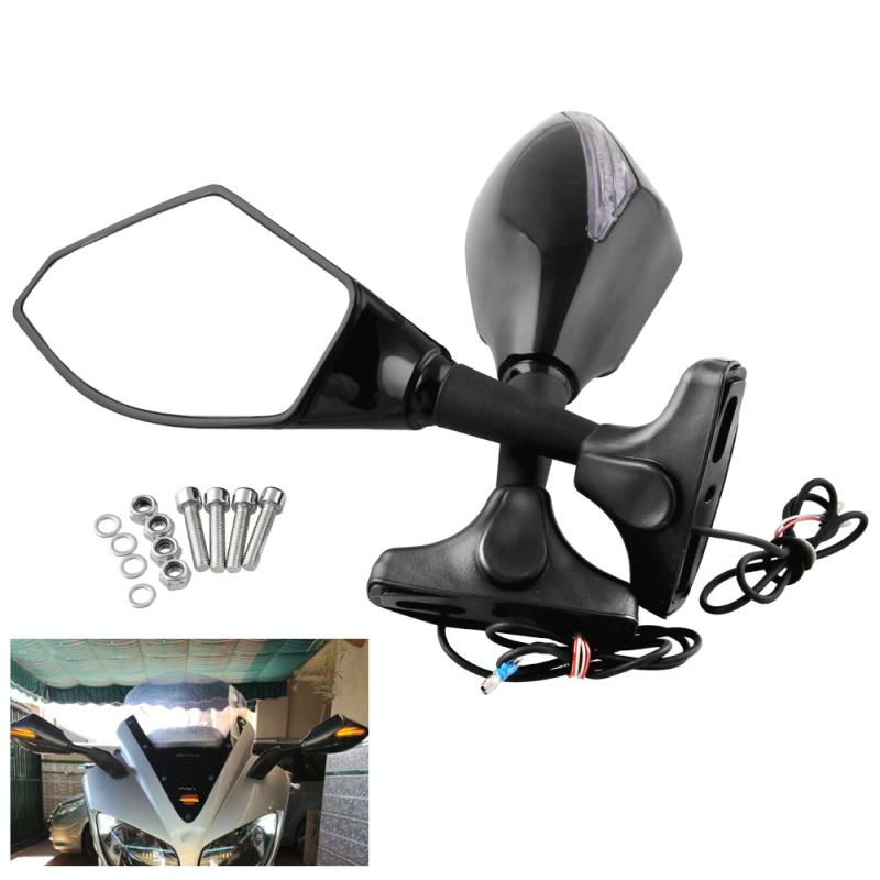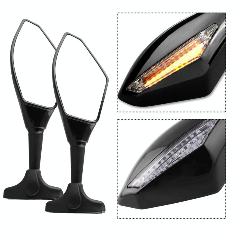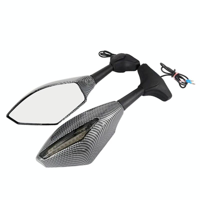 Motorcycle Modified Rear View Mirror Set with Light for Kawasaki (Carbon Fiber Black)