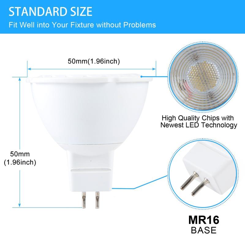 1. Easy Installation: MR16 base, these led bulbs fit well into any standard MR16 recessed lighting fixtures. Just plug and play. Perfect for Landscape, Recessed, Track Lighting, etc.