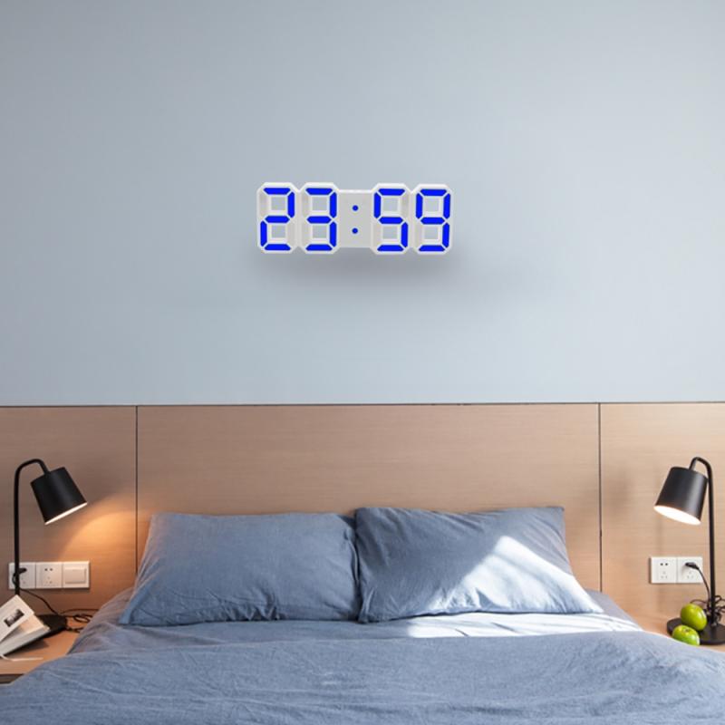 Multi-Function Large 3D LED Digital Wall Alarm Clock with Snooze Function, 12/24 Hours Display for Home, Kitchen, Office, DC 5V, CE Certificated(Blue)
