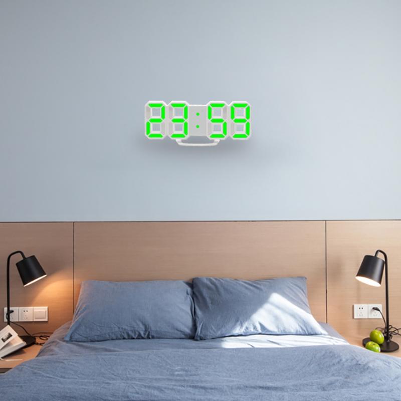 Multi-Function Large 3D LED Digital Wall Alarm Clock with Snooze Function, 12/24 Hours Display for Home, Kitchen, Office, DC 5V, CE Certificated(Green)