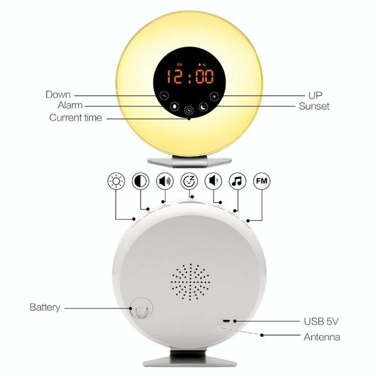 7. High imitation of sunrise, gentle light, not dazzling, colorful light conversion or manual selection of their favorite lighting color