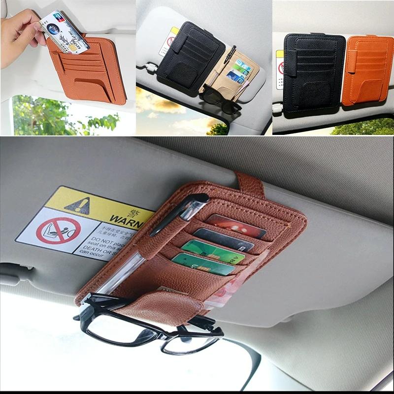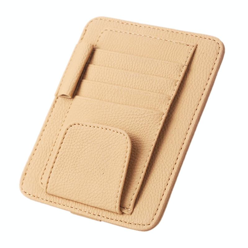 Multi-functional Auto Car Sun Visor Sunglass Holder Card Bill Ticket Storage Holder Pouch Bag(Khaki)
