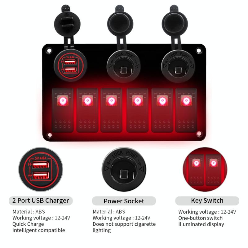 Can be used for headlight switch, fog light switch, width light switch, car refrigerator switch, car vacuum cleaner switch, car external equipment to take power for mobile phones, tablet and other power supply.
