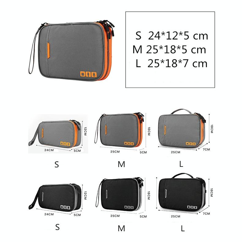 Multi-functional Headphone Charger Data Cable Storage Bag Portable Power Pack, Size:M, 25 x 18 x 5cm (Black)
