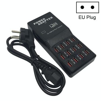 W-858 12A 12 Ports USB Fast Charging Dock Desktop Smart Charger AC100-240V, EU Plug (Black)
