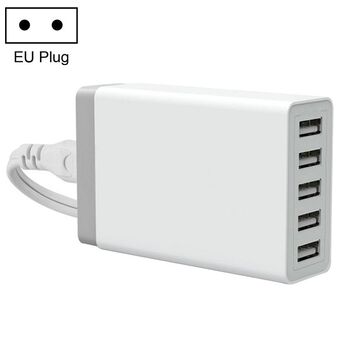 XBX09 40W 5V 8A 5 USB Ports Quick Charger Travel Charger, EU Plug(White)
