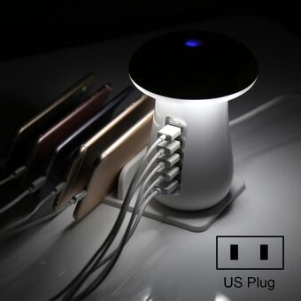 XLD888 5 Ports (2 x 5V/1A + 2 x 5V/2.1A + 1 x QC3.0) USB Charger Mushroom Light Desk Lamp Charger with Phone Holder