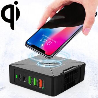 F88W 3 x USB + 2 x USB-C / Type-C Ports QC3.0 Desktop Charger with Wireless Charging Function